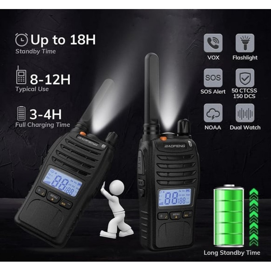 - Baofeng E88 Yükseltilmiş Sürüm telsiz, kutudan çıkar çıkmaz kullanabileceğiniz, lisanssız bir telsizdir. Arkadan aydınlatmalı led bir ekrana, iki acil durum alarm moduna, seçilebilir çağrı tonlarına, ikili saate ve telsize yeni başlayanlar için en uygun modeldir diğer kullanışlı özelliklerede sahiptir.