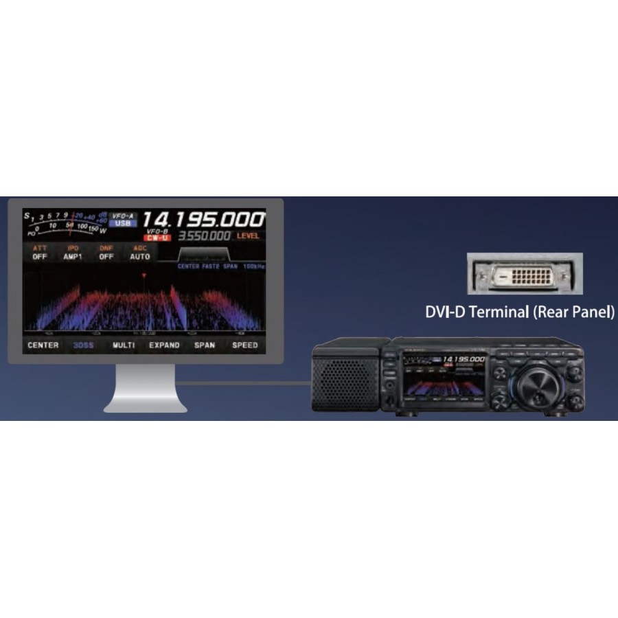 Büyük 4,3" renkli ekran, kullanımı büyük ölçüde basitleştirir; daha büyük kardeşlerinde olduğu gibi, daha kolay kontrol için bir fare ve/veya klavye bağlanabilir. Büyük VFO topuzunun yan tarafındaki açıkça görülebilen LED'ler mevcut çalışma durumunu gösterir (VFO- A, VFO-B, bellek, netleştirici/bölme).'Ön ayar' işlevi, FT-8 işlemi için tüm parametrelerin süper hızlı ve optimum şekilde ayarlanmasına yardımcı olur.